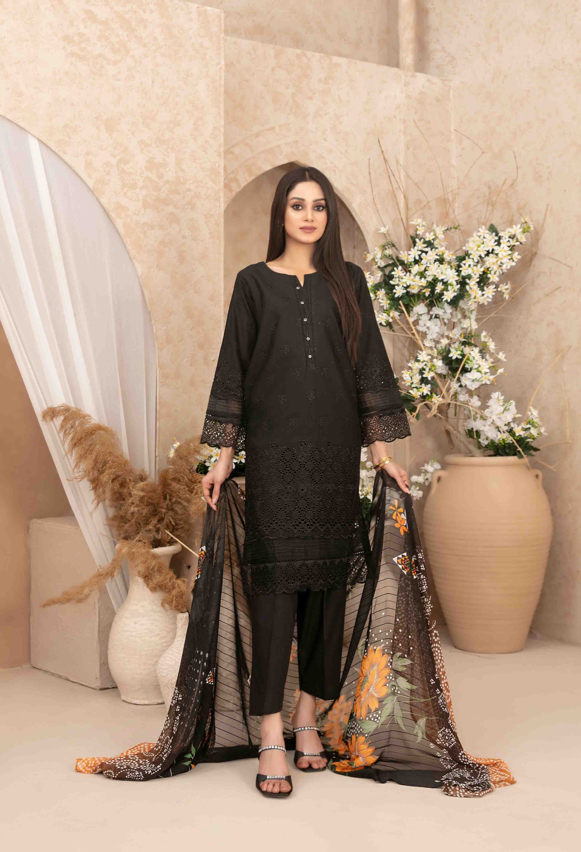 (colour:-black) Lawn Embroidered Outfits