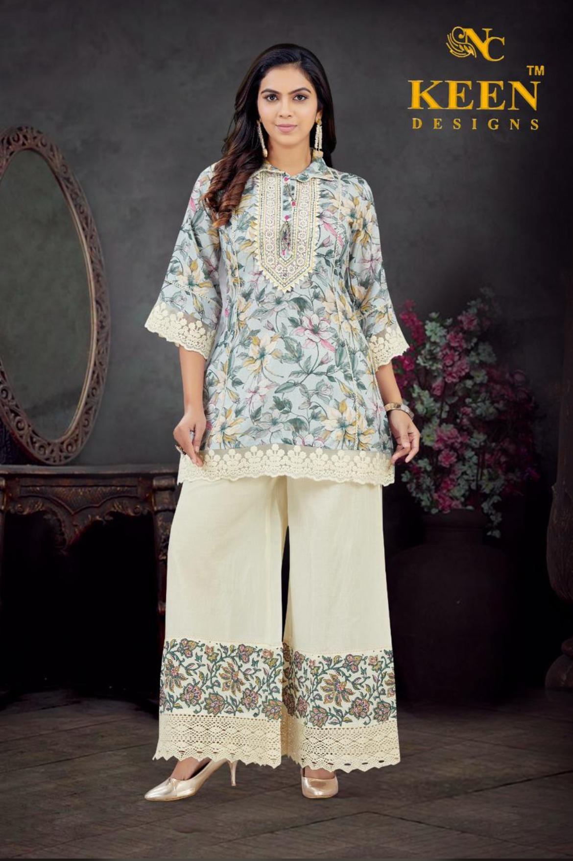 Elegant Linen Printed Cord Set