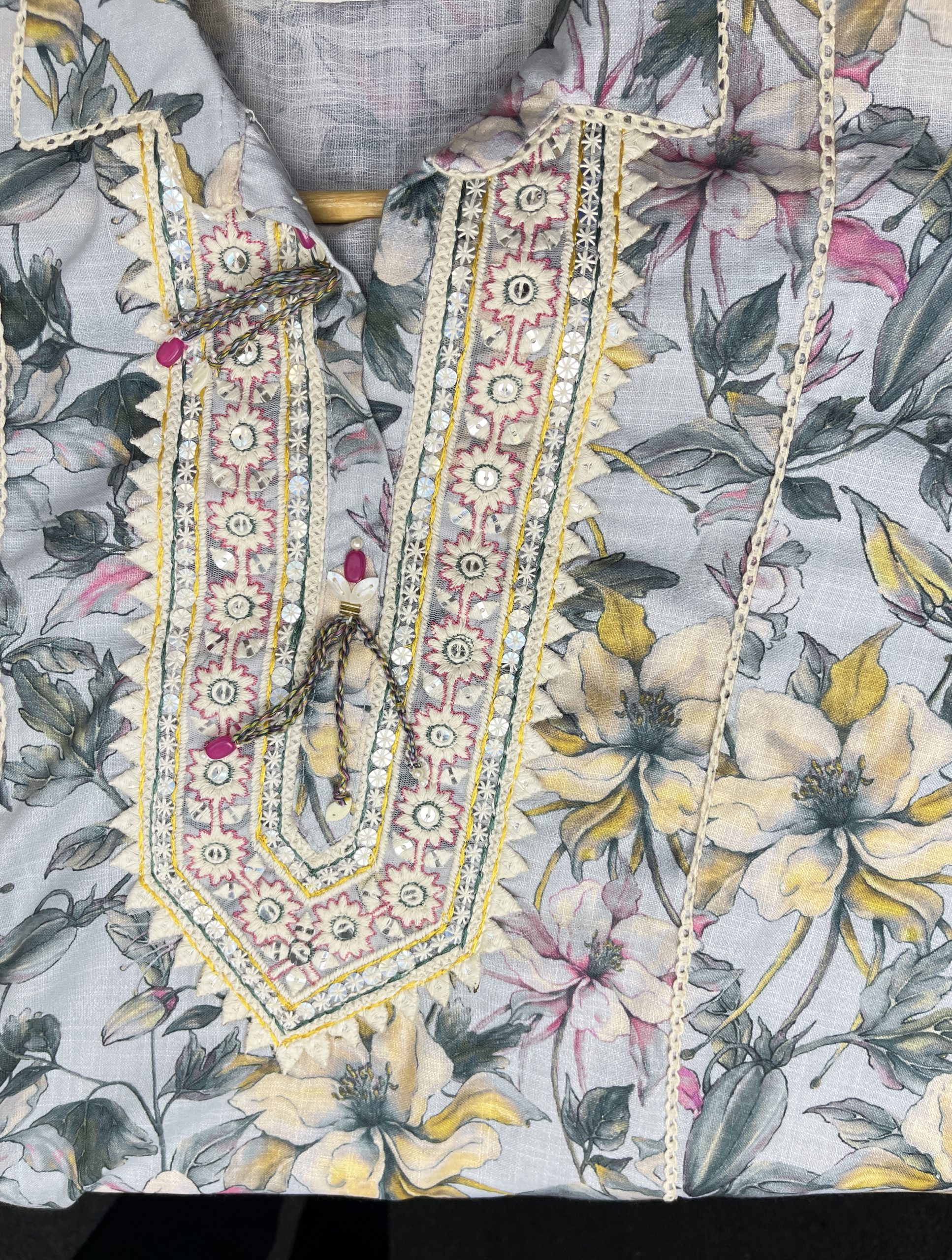 Elevate your style with our beautifully crafted Linen cord set, enhanced with intricate detailings that adds a touch of elegance to any look. Designed for comfort and style, this two-piece set is perfect for both casual outings and special occasions, offering a balance of softness, sophistication, and breathability.