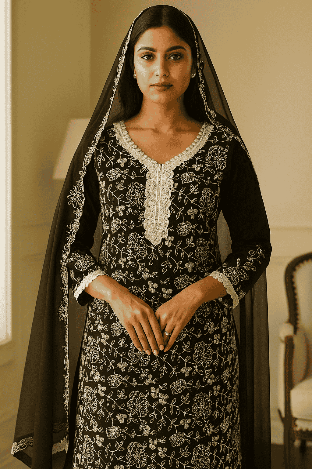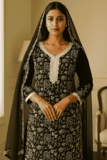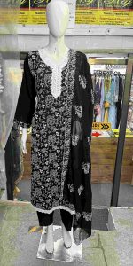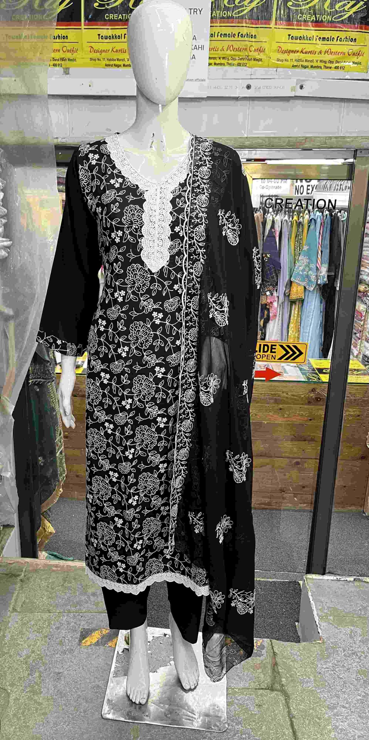 Elegant Black Rayon Embroidered Outfits with Fancy Dupatta