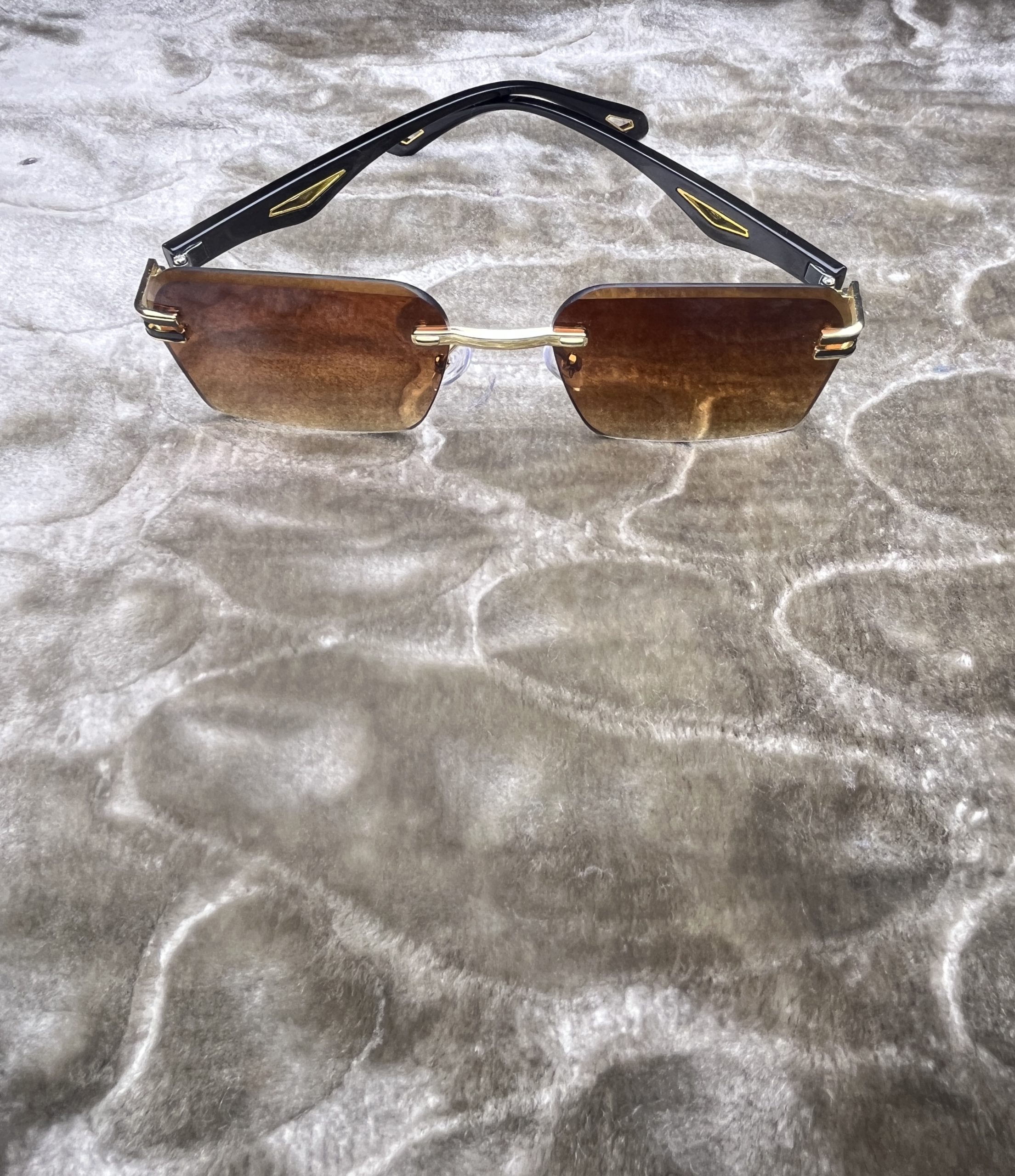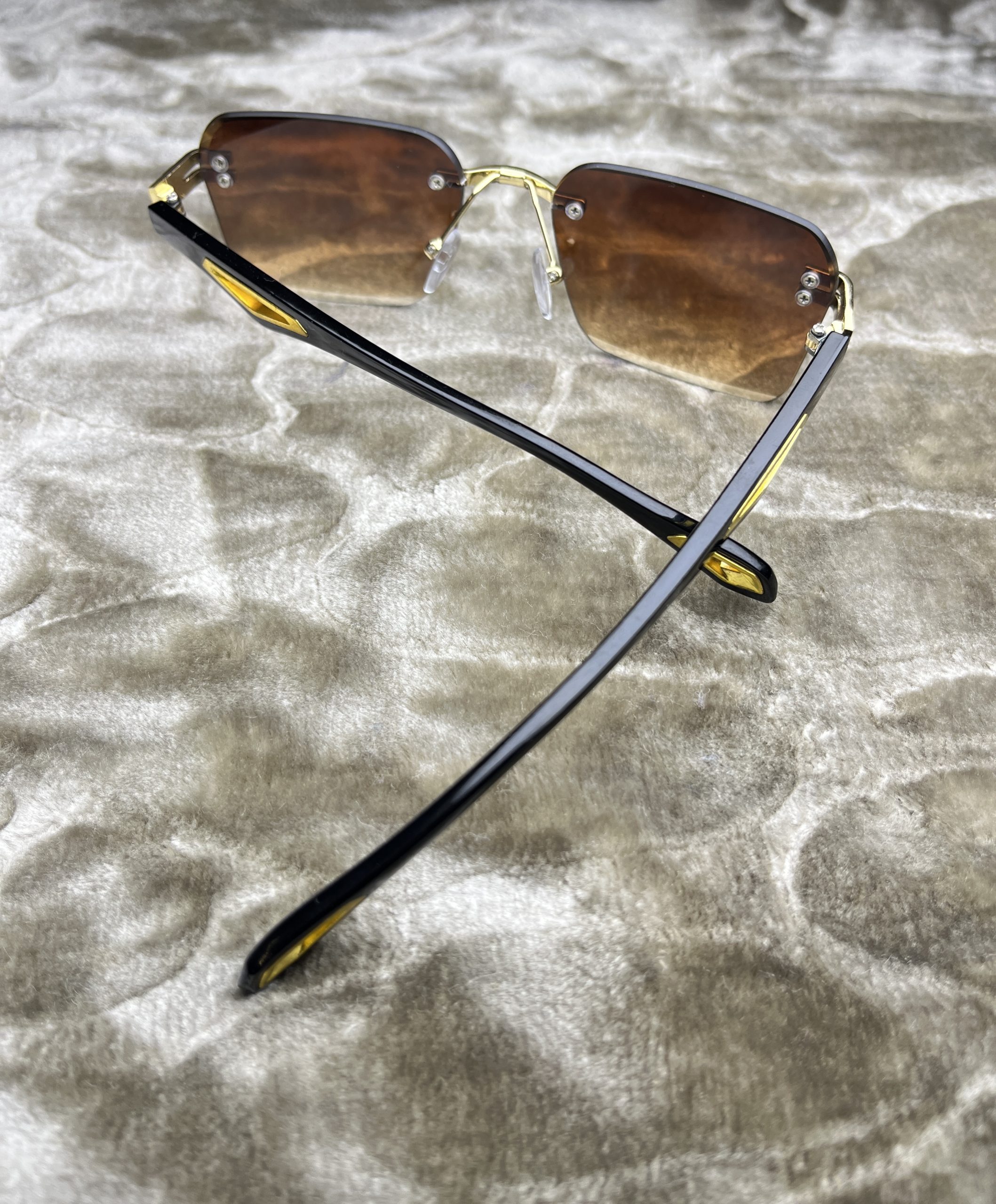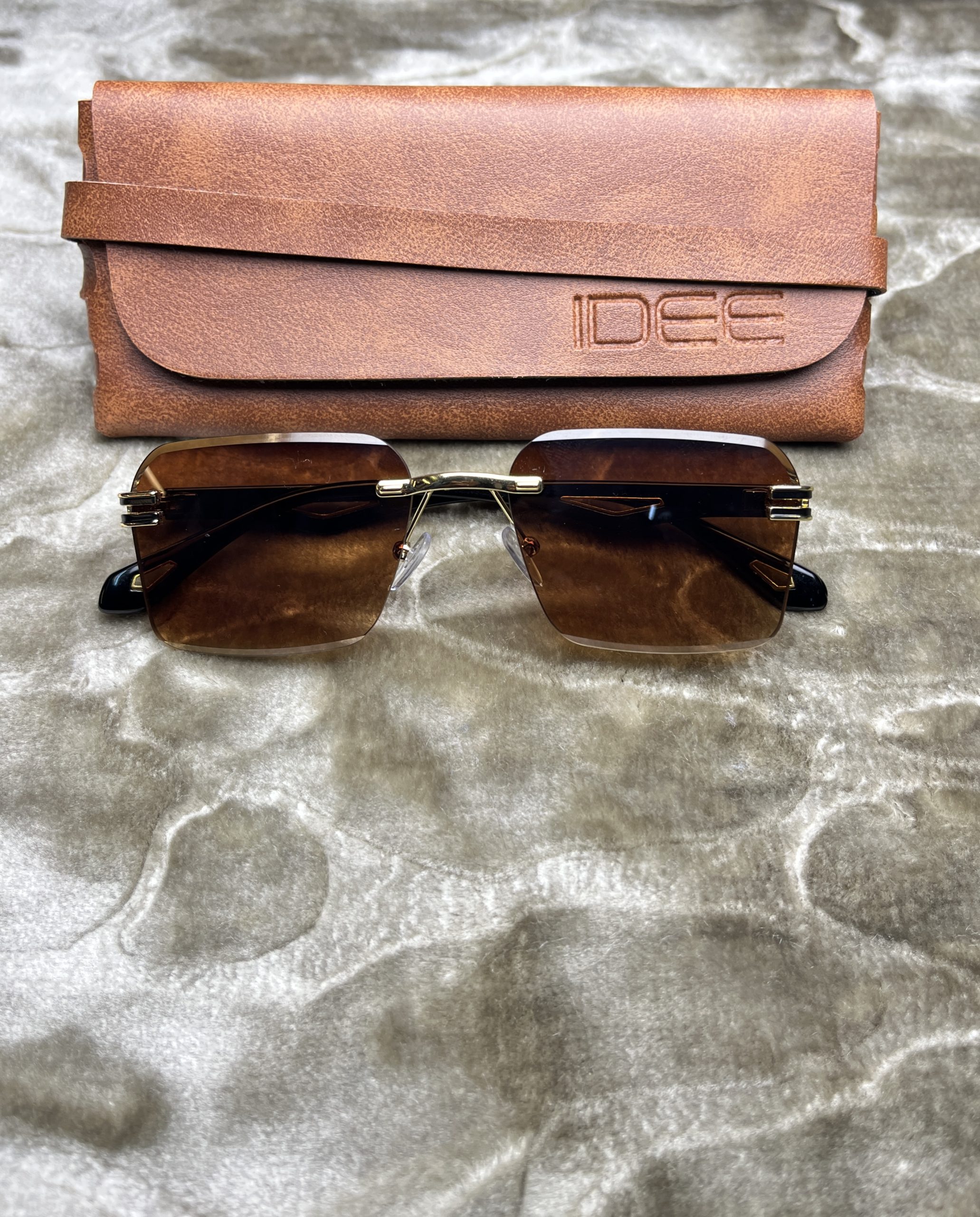 IDEE Unisex Brown Rimless Sunglasses with Case – Stylish UV Protection